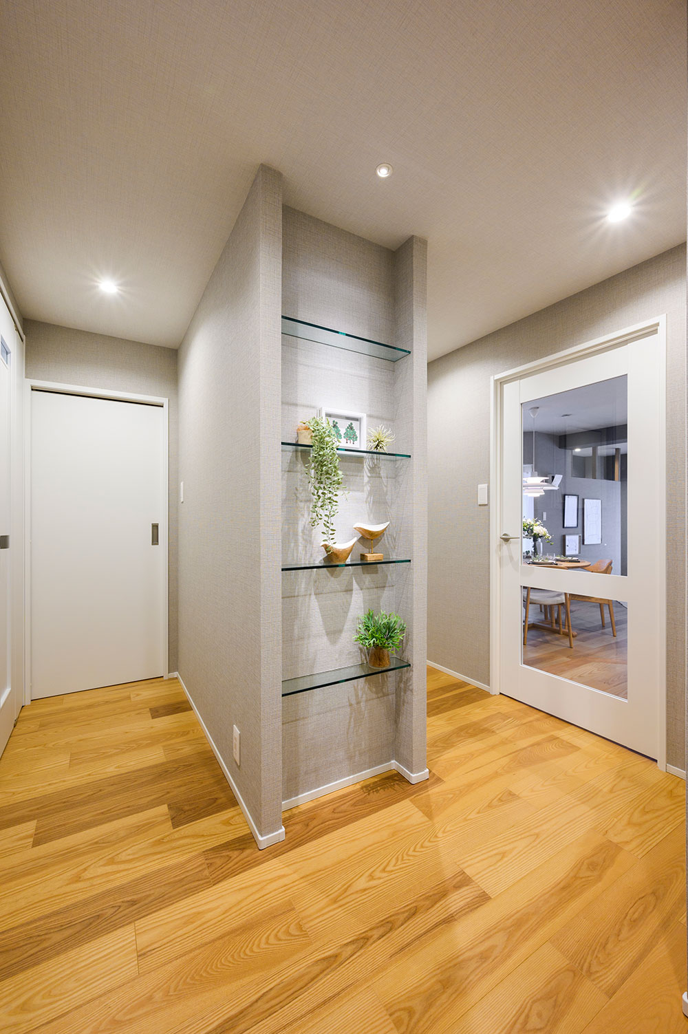 玄関の正面には、ニッチを活かした飾り棚を新設。