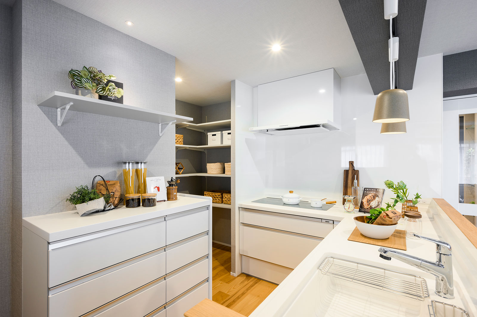 キッチンは、インテリアになじみやすい白を選定。