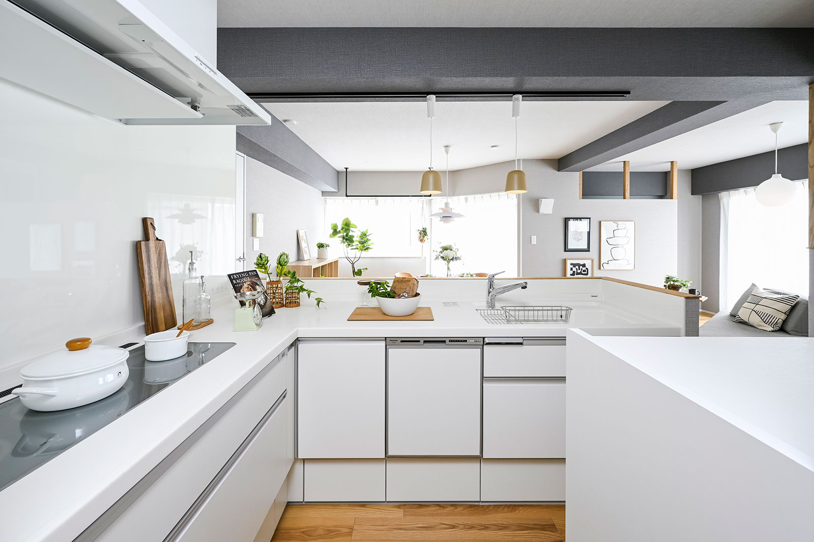 家族でキッチンに立てるよう、L型タイプを採用。