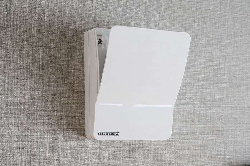 廊下に設置したこともあり、壁面にはタイルを貼ってデザイン性を高めている。