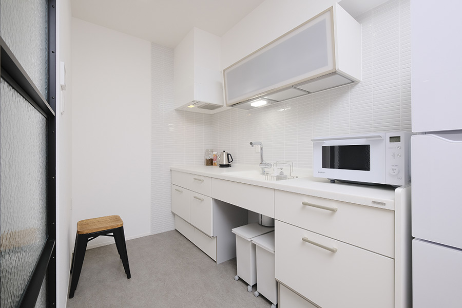また、シンプルながらこだわりが詰まったキッチンには、なんとガスコンロやIHなどの調理火器がありません。実際は卓上コンロやIH機器を置くことで、将来「賃貸」に出した場合でもメンテナンスがしやすいように配慮されています。