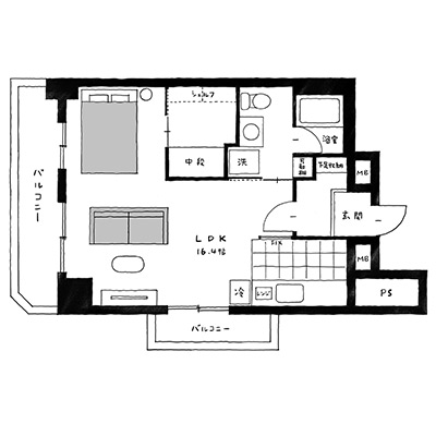 とっても立地の良い2DKのマンションを、広々ワンルームへと改装させて頂きました。