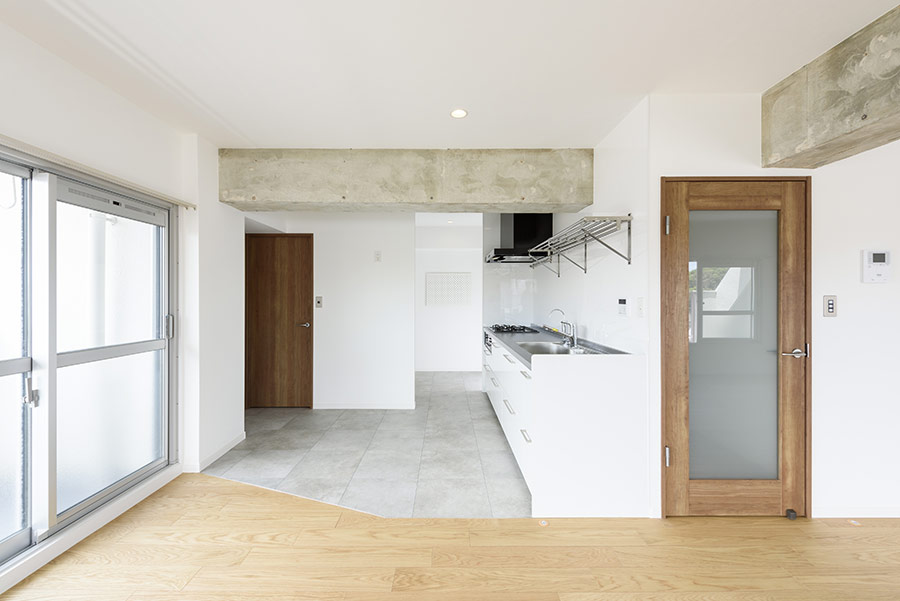 玄関部分に土間スペースを作って「住居」と「仕事場」をしっかり分けることで、程よい距離感を確保しました。