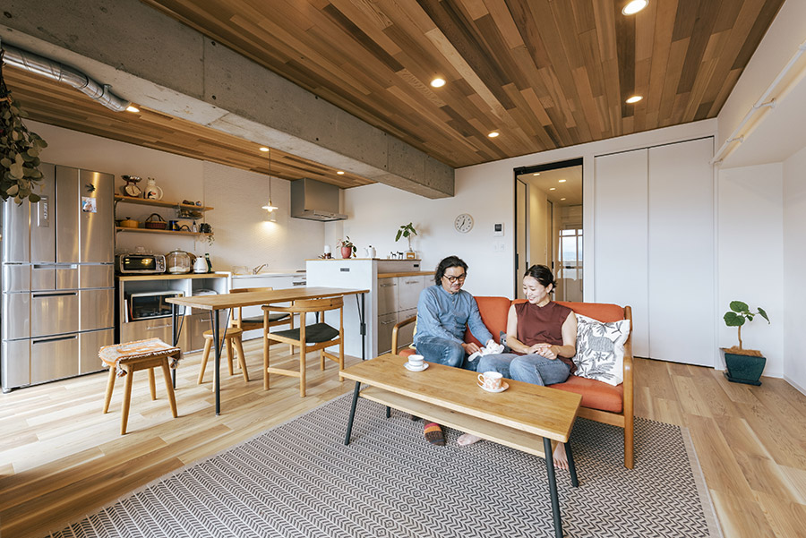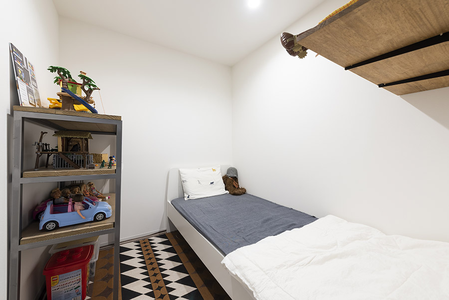 当社スタッフがマイホームを購入し、リノベーションした現場です。一般的には68㎡だと家族4人が暮らすには狭く思われがちですが、個室を上手にレイアウトしたことでリビング空間が最大化しています。