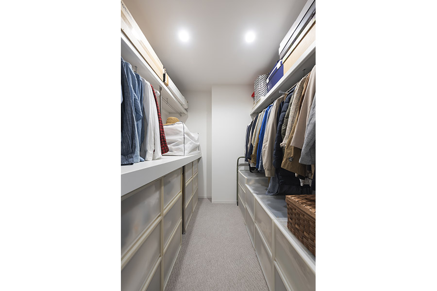 もちろん、見た目と同時に実用性にもこだわり、インテリア性を持った室内物干しやIKEAのオーダー収納なども採用。プロのこだわりが詰まった、明るいマイホームとなっています。