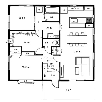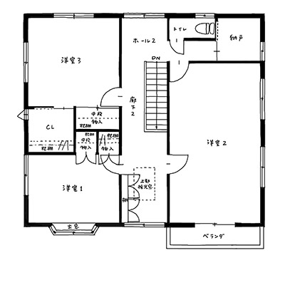 戸建とは言え、使用できる広さは2階部分の76㎡です。もっとも日当たりのよい空間をリビング&ダイニングとし、その他は夫婦の部屋と子どもたちが過ごす個室を用意しました。
