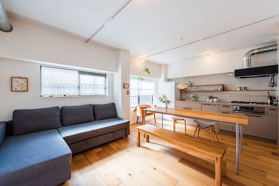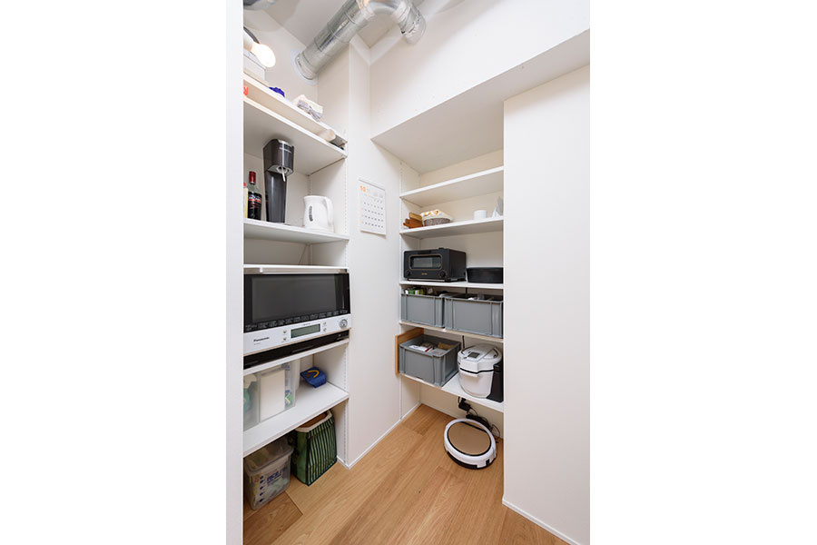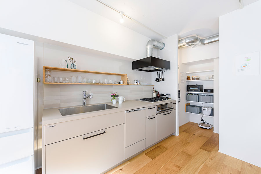 ご夫婦2人が生活の中心とされるリビングには、キッチンハウスのグラフテクトを設置。インテリア性の高さだけでなく、使いやすさを両立したキッチンとして大人気です。