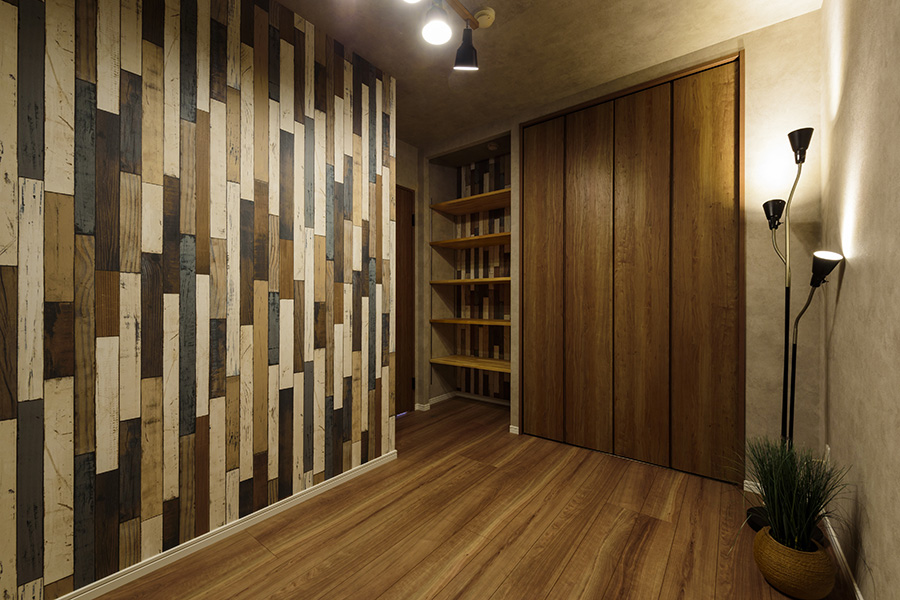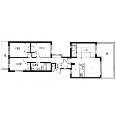 自然豊かなロケーションにたたずむリゾート感のあるマンションの1室を、子どもの成長に合わせてレイアウトを変えられるお家へとリノベーションさせて頂きました。今回のマンションはバブル期に建てられた物件だけあって、共用部にはプールを完備。さらに、室内でも子どもたちが元気な遊べるようにリビングにはブランコとハンモックを設置しました。それぞれが「気持ち良い」と感じる空間を設置した、家族みんなの笑顔が広がるお家です。
