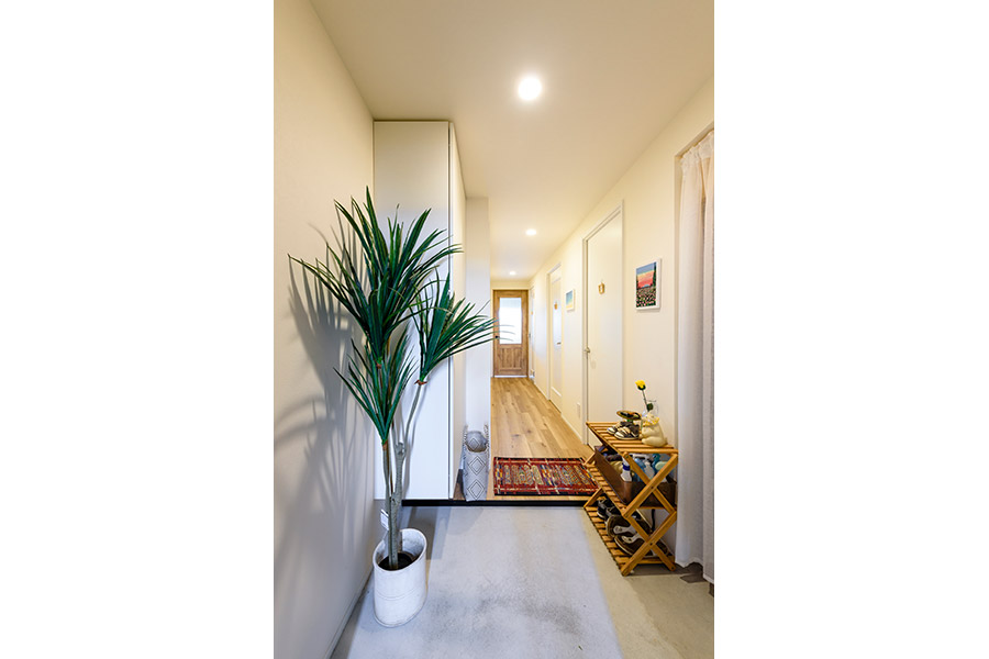 そして、隠れたポイントながらも、とっても重要なのが「収納力」です。スッキリと暮らすには、どんなご家庭でも「空間の遊び(余白)」が必要です。セントラル収納や玄関収納をバランスよく配置し、暮らしやすさと空間のゆとりが両立したお宅となりました。