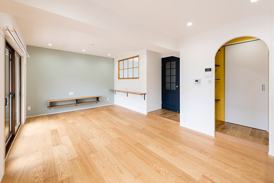 リビングは落ち着いた雰囲気ながらも、収納部分などプライベートな空間はビビットな色使いで遊びを楽しまれています。隠れた部分でオシャレを楽しむセンスこそが、都心で暮らすオトナ二人の生活にピッタリなイメージです。