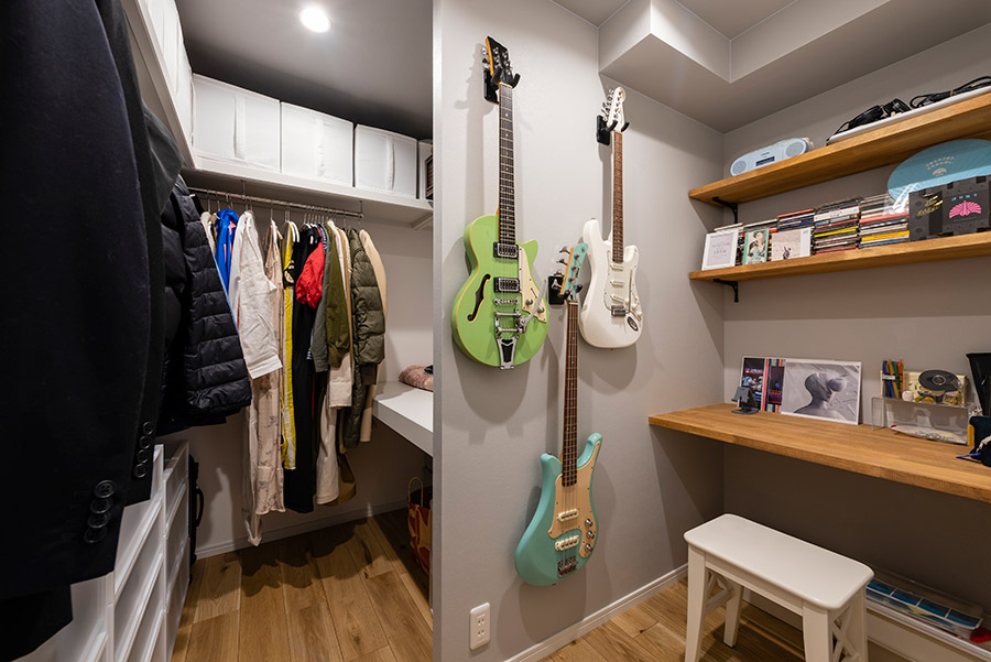 ご夫婦二人が気持ちよく暮らせるよう、南面のバルコニーに気持ちの良いリビング空間をレイアウトし、見せる収納をバランスよく配置しています。同時に、お二人がそれぞれの時間を楽しめるよう、予備の洋室や書斎スペースも確保し、毎日をストレスなく過ごせるお宅となりました。