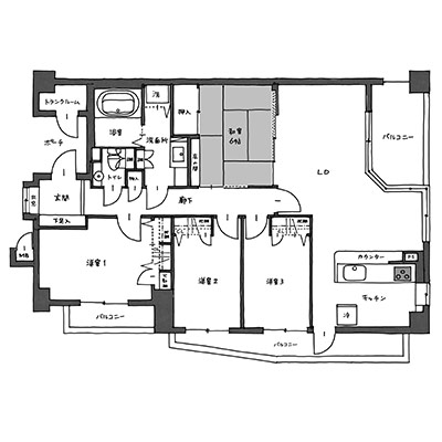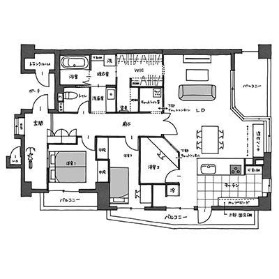 95平米というスケール感のあるお宅を、贅沢な間取りでリノベーションしています。