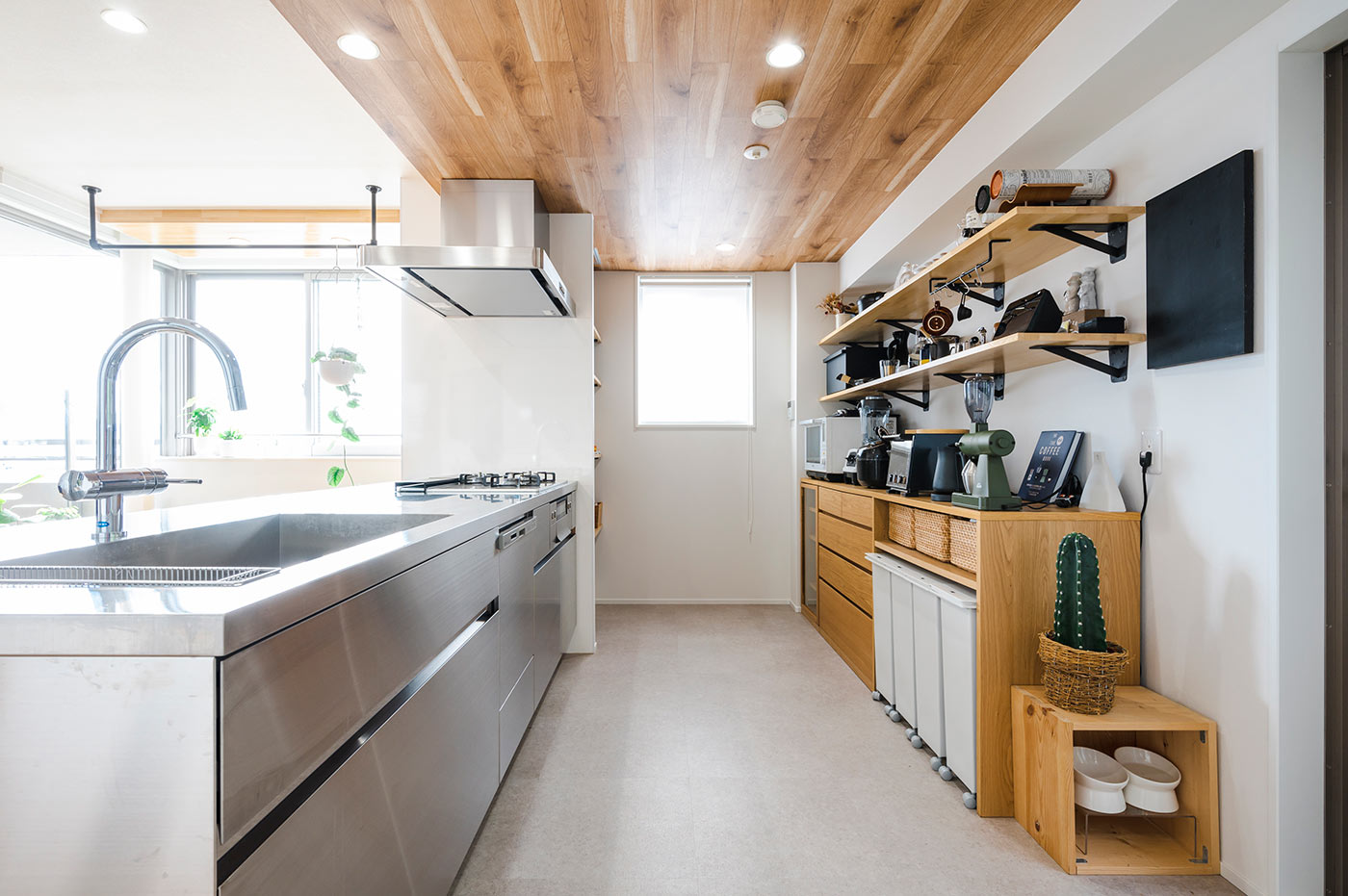 プランニング当初から「ネコとの生活を楽しむ暮らし」を意識されていたため、それぞれがストレスを感じない動線を確保すると共に、ネコ専用のトイレや壁面キャットウォークなども配置。ネコも人間も、自然体で暮らせる空間を実現しました。