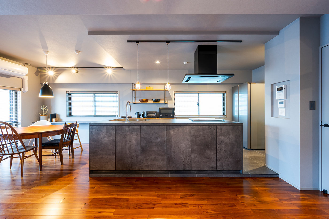 マンションならではの大きめの梁など、どうしても存在をなくすことができないパーツについては、陰影を意識したデザインでカッコよく仕上げています。