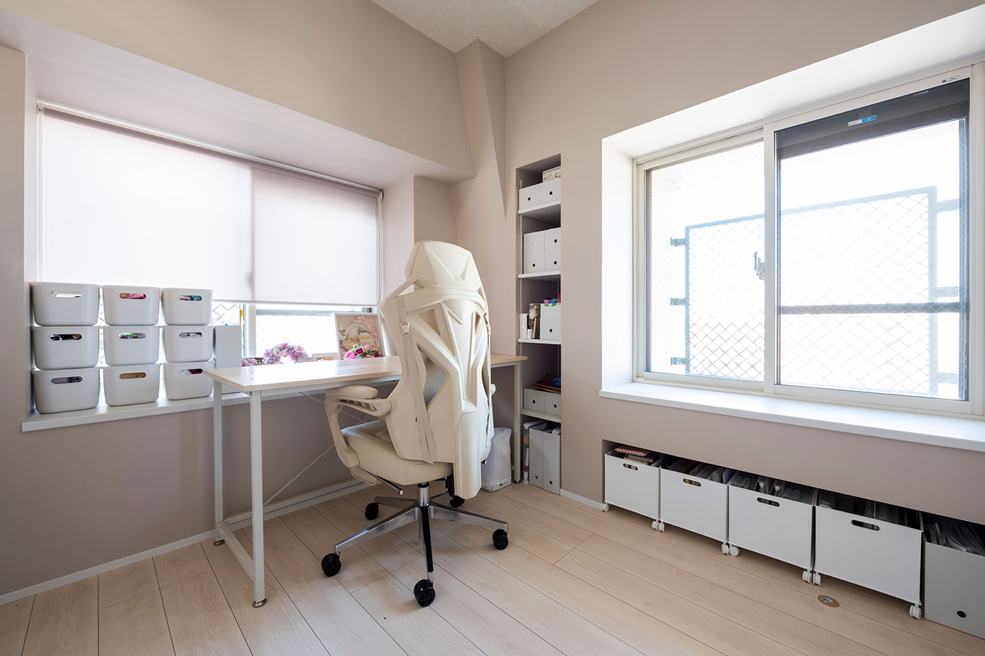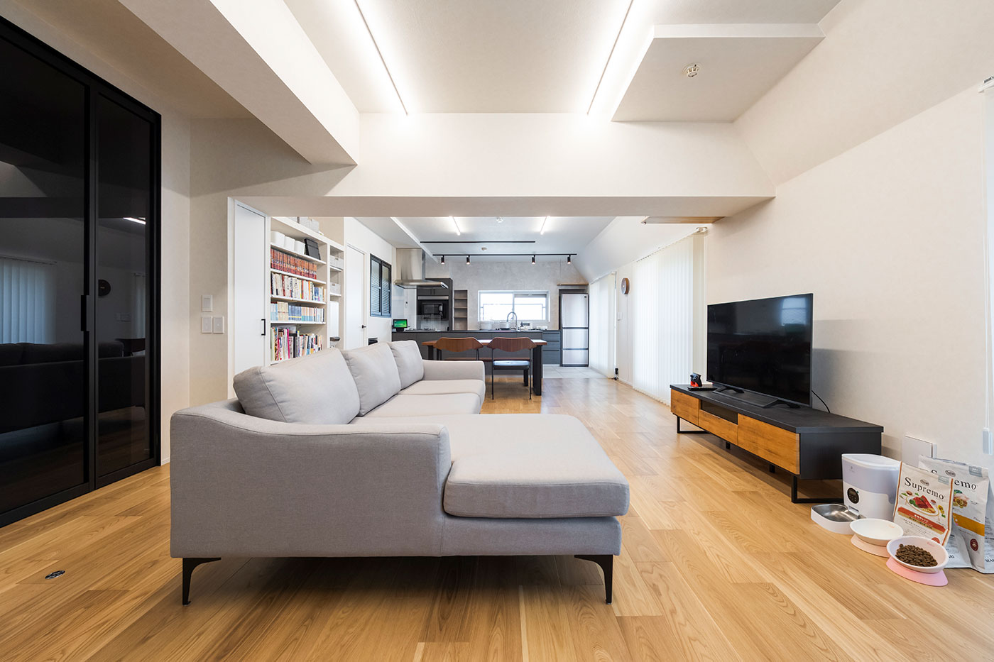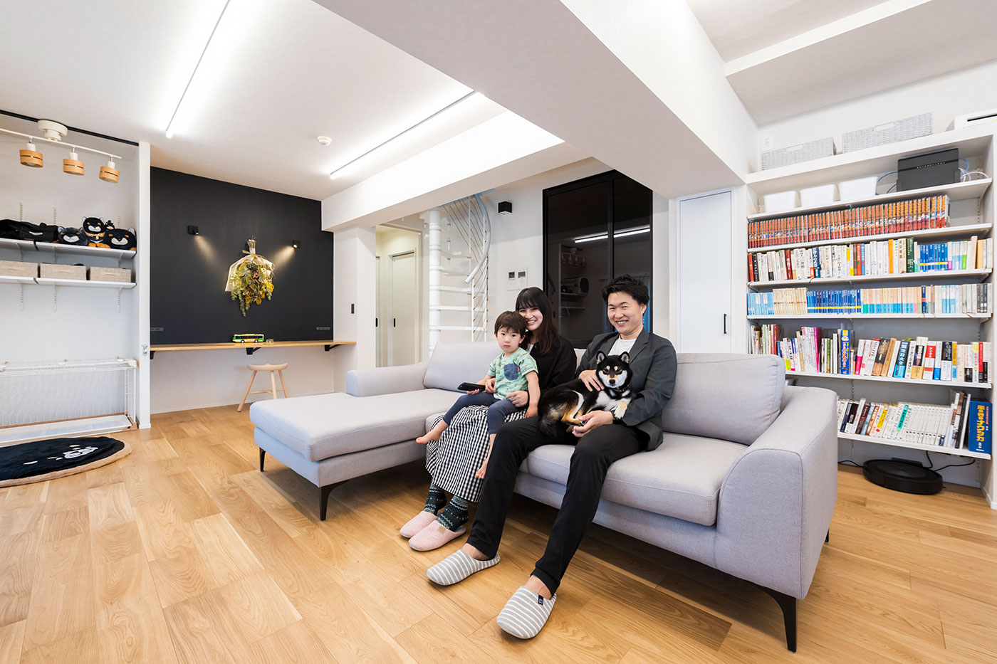 リノベーションらしい「自由設計」だからこそ実現した空間ですが、同時にお客さまのストレスの軽減も意識した「職住両立」のマイホームが完成しました。