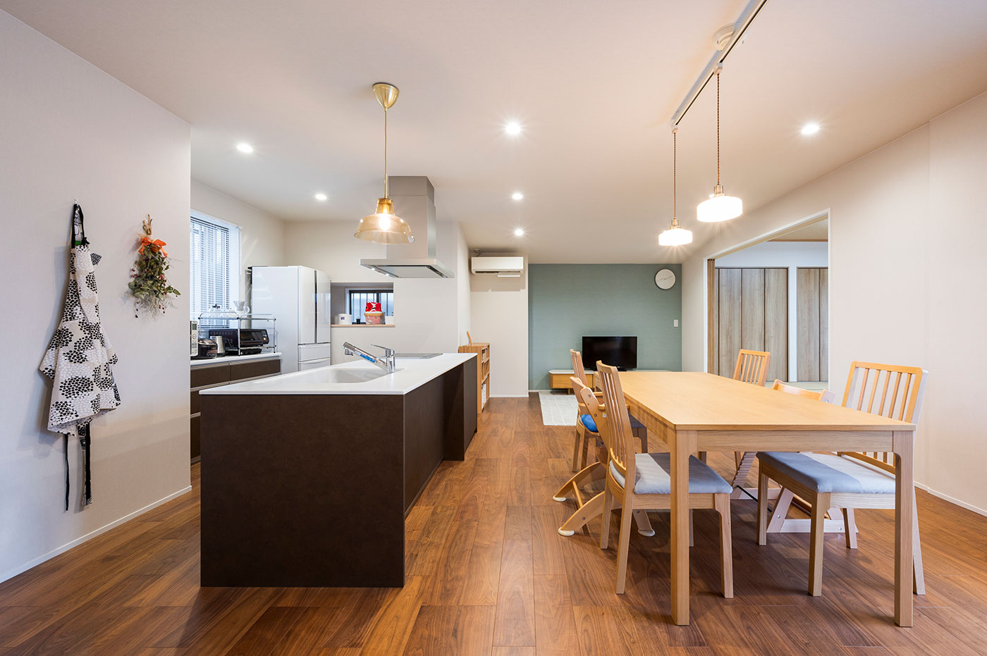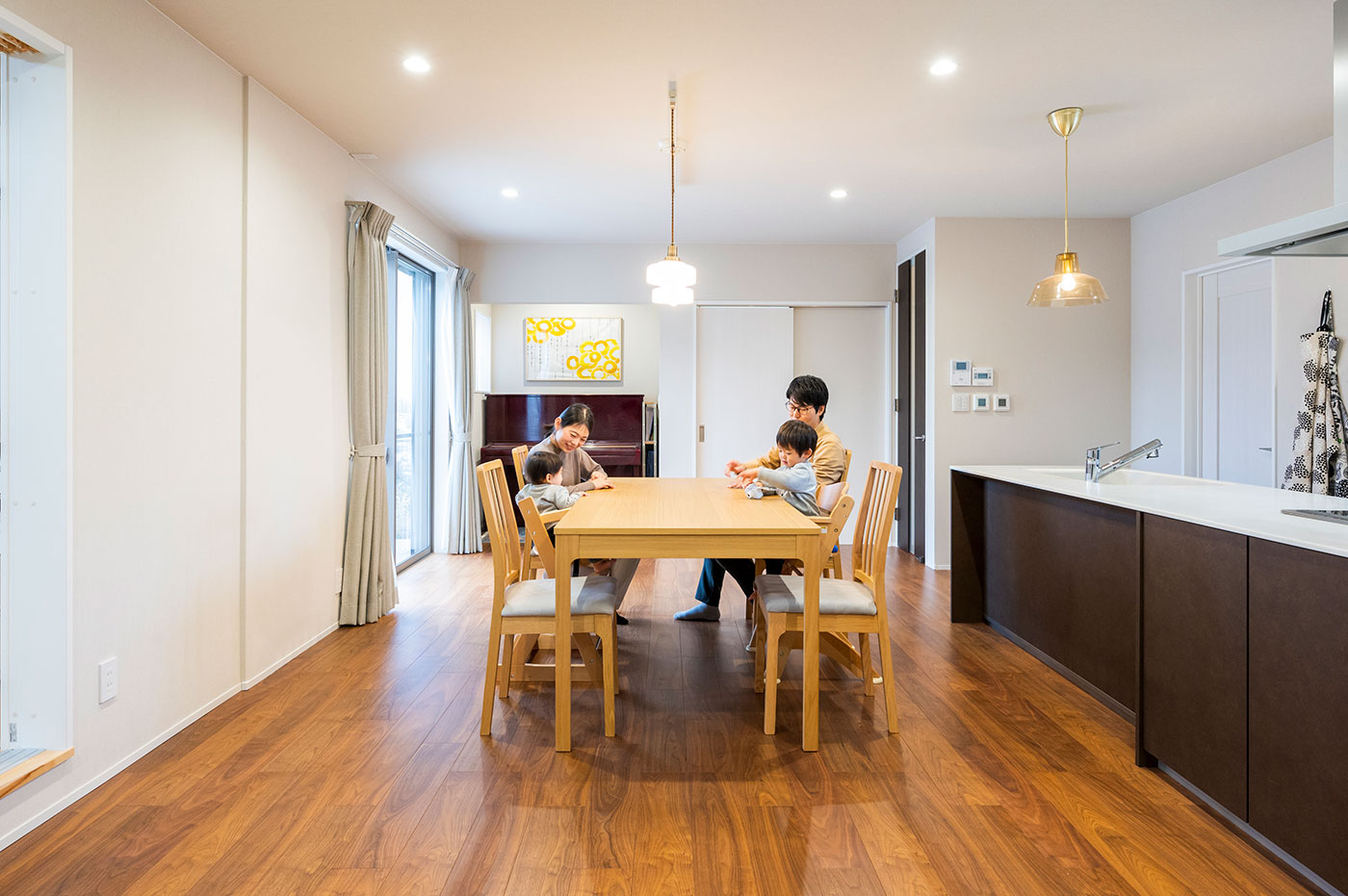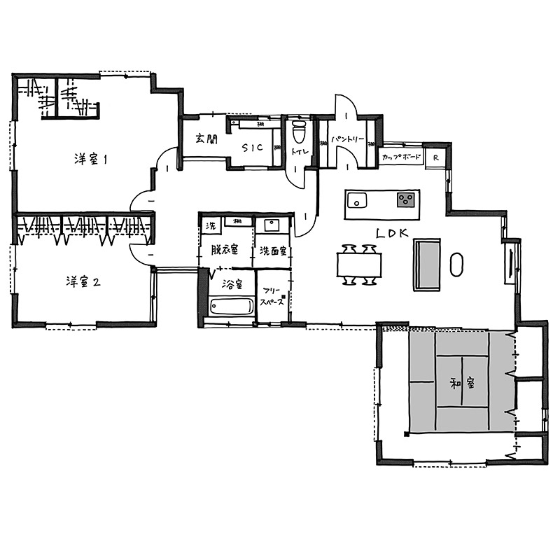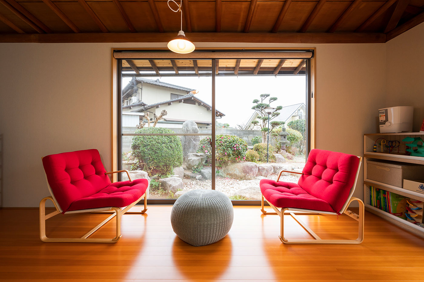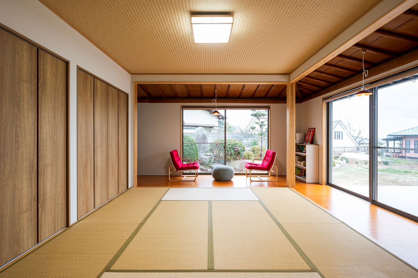 いまどきの新築であれば3軒くらい建つ土地サイズですので、現地を訪れるとその広さに驚かされます。もちろん、宅内も広々としているのですが、20畳オーバーのリビングと広縁を持つ8畳の和室が一体となっているので、4人家族が本当にのびのびと暮らされています。