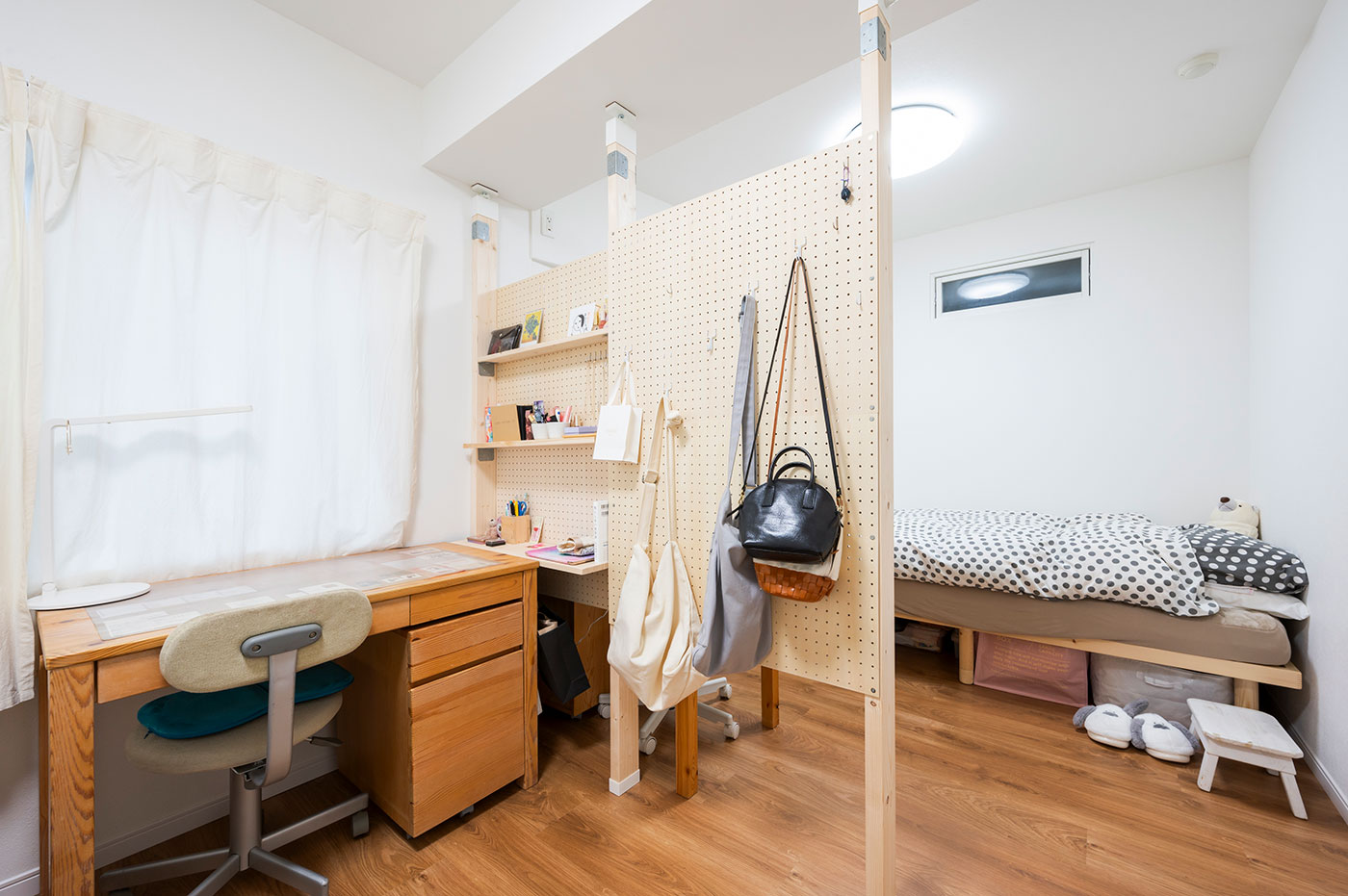 また、玄関近くの「洋室1」にはドアが2カ所取り付けられています。それなのに、部屋の真ん中に壁はなく、オーナーがDIYして取り付けた有孔ボードが設置されているだけ。この部屋についても、不動産会社によっては2室か1室か、論争が巻き起こりそうです。