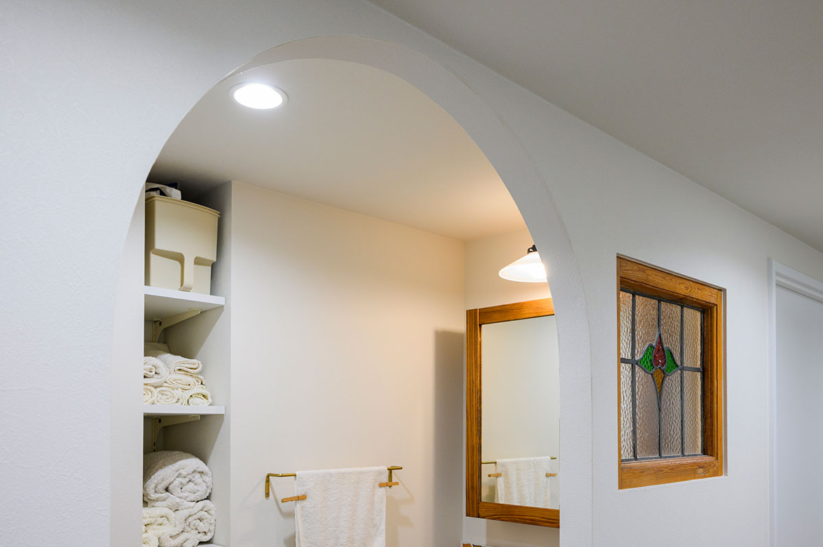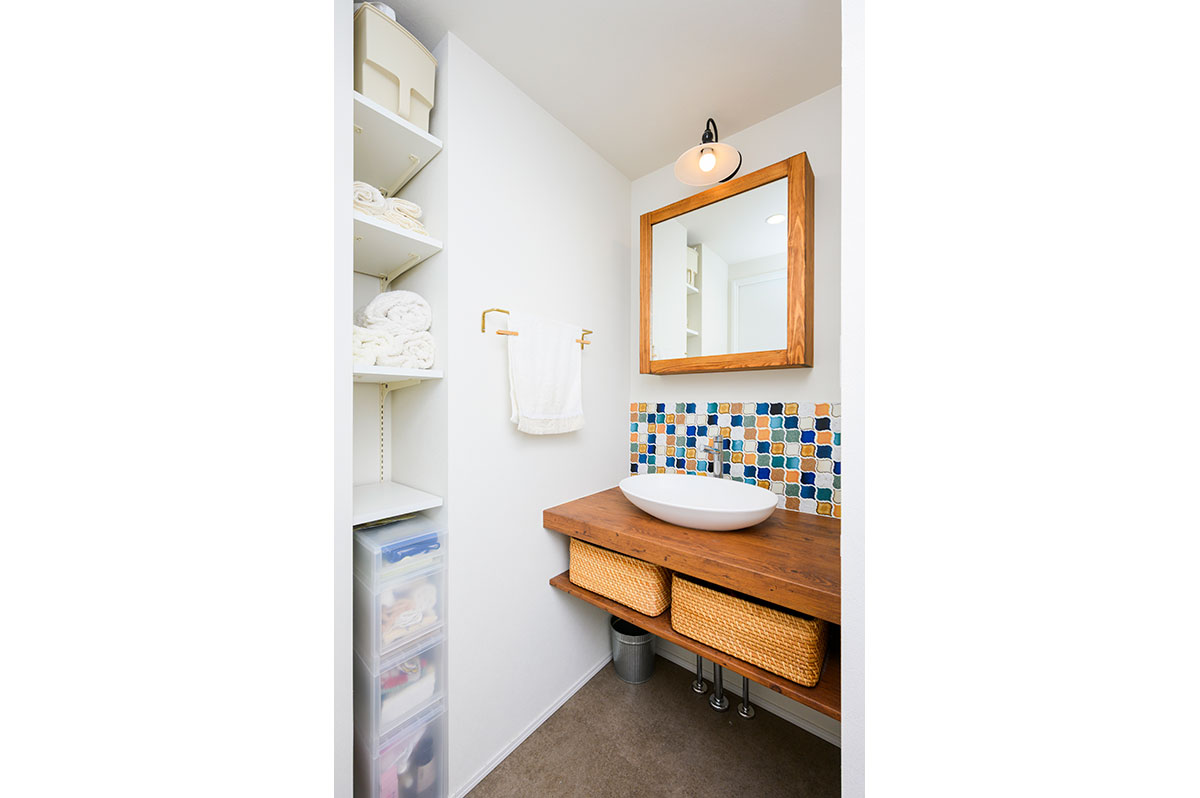 洗面のタイルや飾り窓、トイレの壁紙や照明など、ご夫婦のこだわりも随所に散りばめられいます。機能的なだけでなく、日々の暮らしがワクワクする空間へと生まれ変わりました。