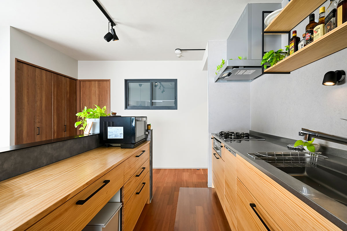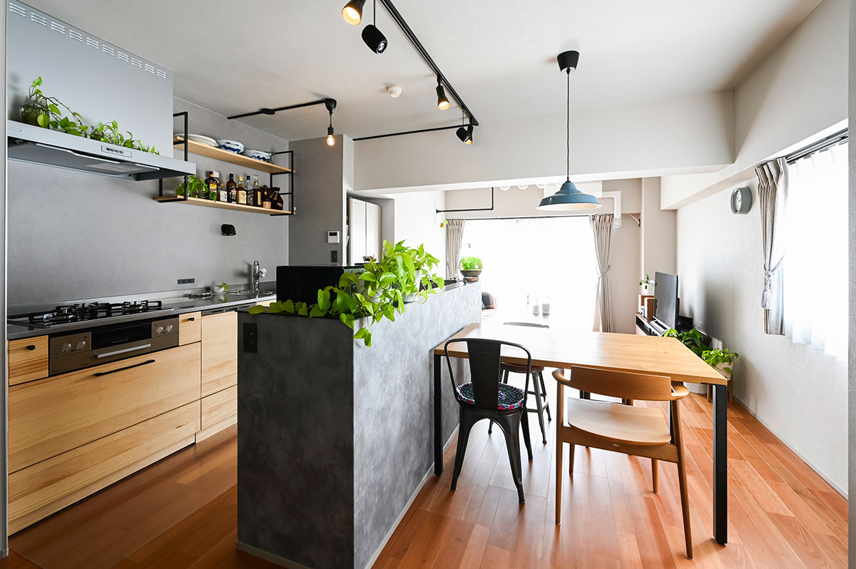 リノベーションで実現されたいポイントは2つでした。夫婦それぞれの個室を作ること、そしてキッチンを「バーのような雰囲気」にすること。