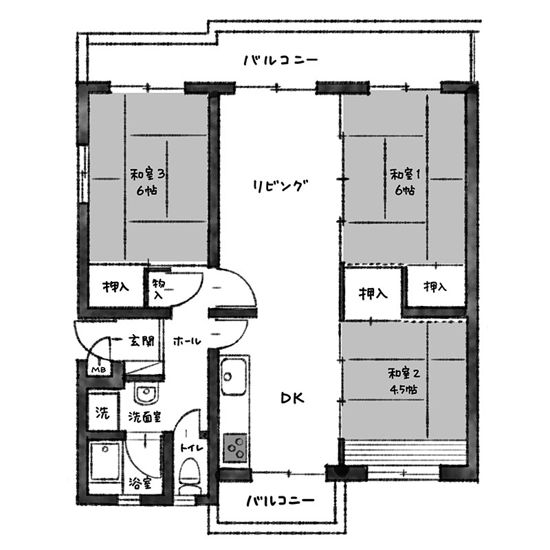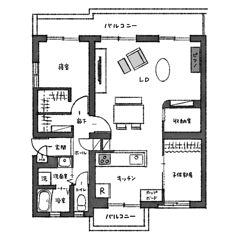 2面バルコニーを吹き抜ける風とたくさんの窓から見える新緑は、団地ならではの開放感を感じさせます。コスパとデザインを両立できる団地リノベのメリットを活かし、家族3人が安心できるマイホームが誕生しました。