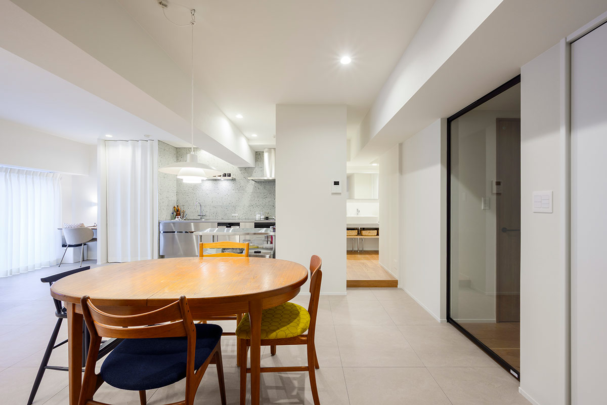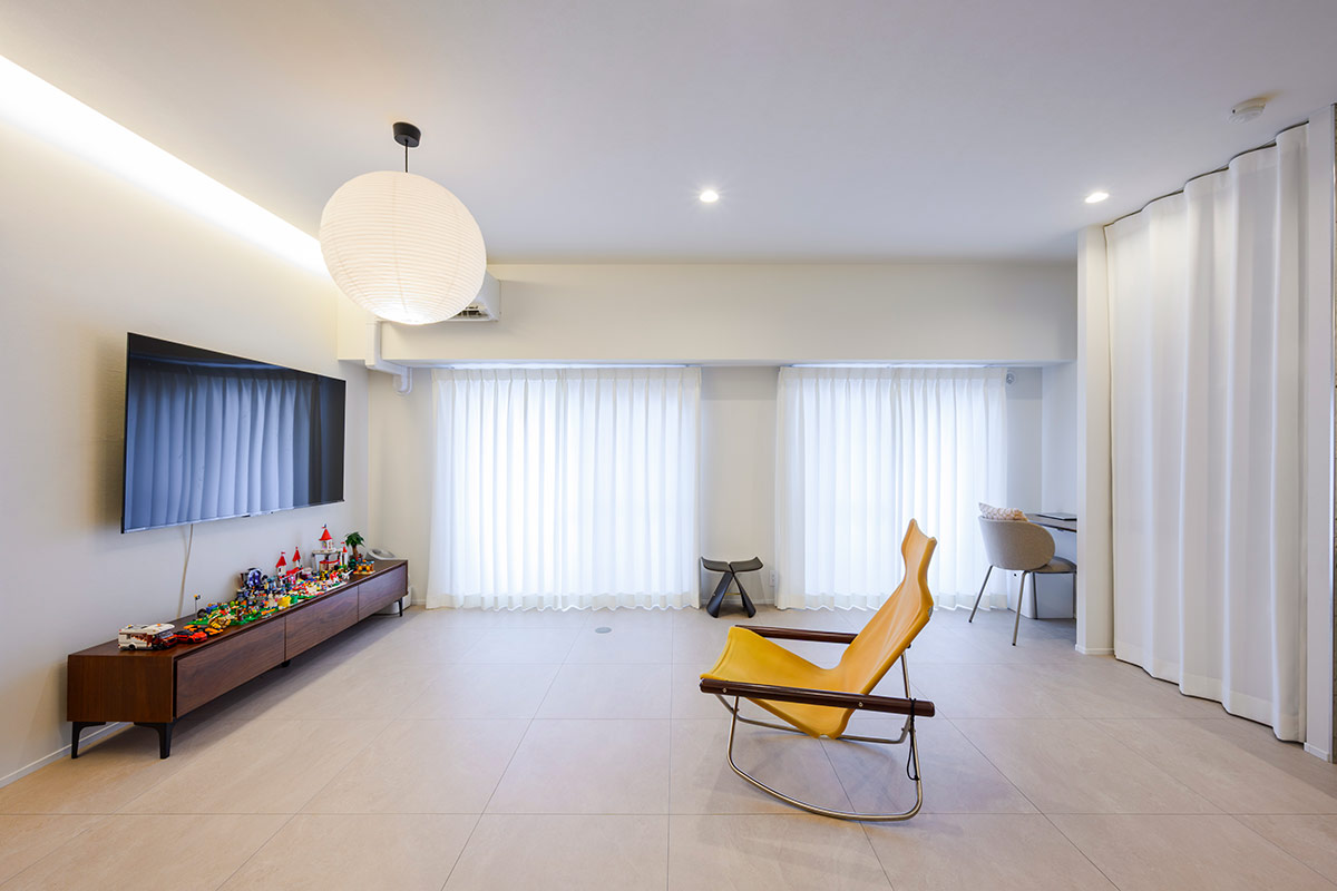 90平米オーバーの、マンションとしては元々広いお宅でした。それでも、リビングが広く感じられるのはキッチンが壁付けタイプだから。料理に集中したいという理由で、対面ではなくあえて壁付けを選択されました。