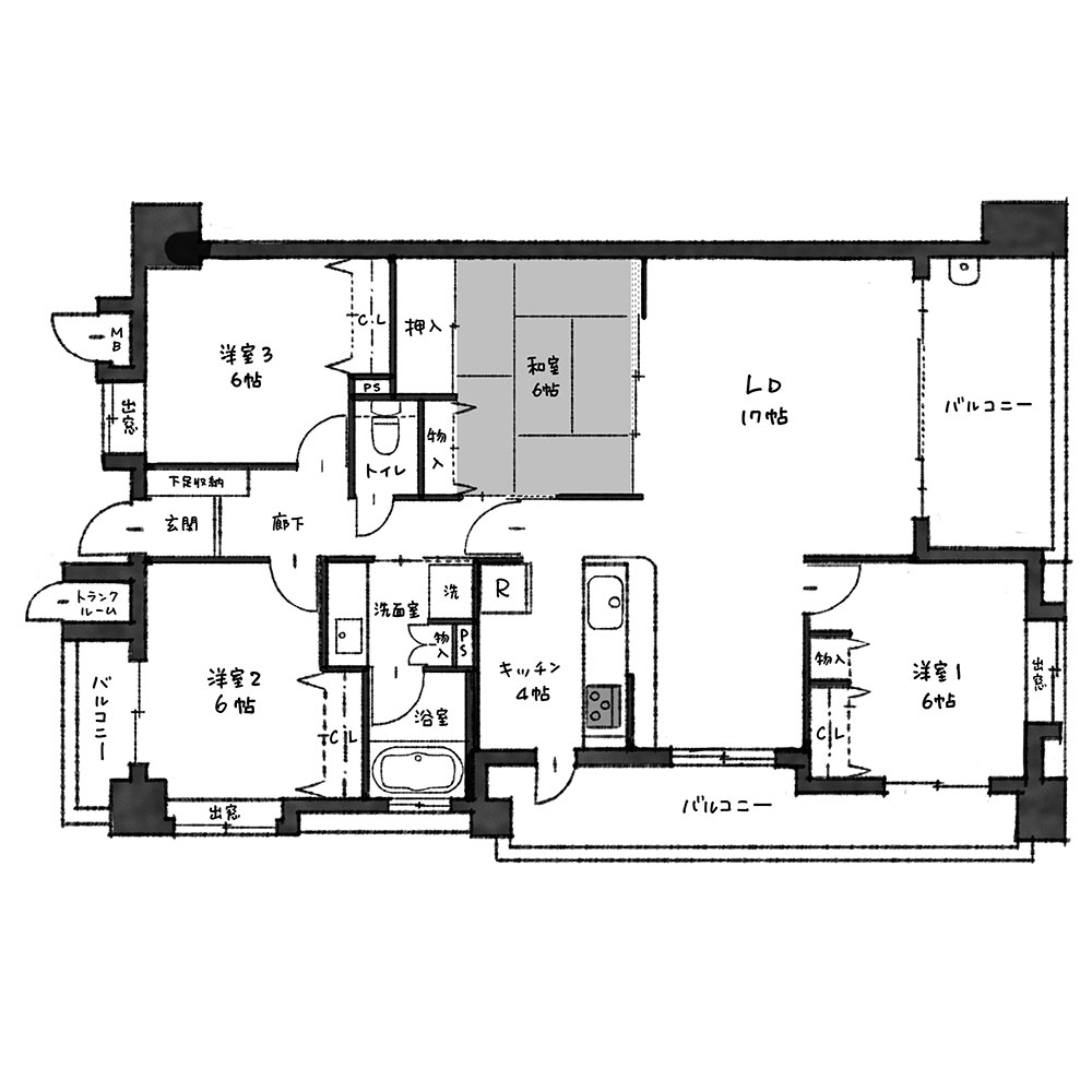 不動産価格が高騰している時代だからこそ、95㎡で3LDKという間取りに「ゆとり」を感じるのではないでしょうか。新築時には4LDKだった空間を、現代の家族構成に合わせてたっぷりの収納を持つ3LDKへとリノベーションしました。