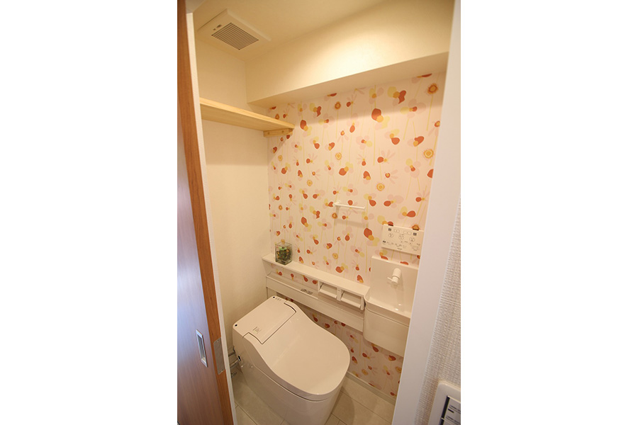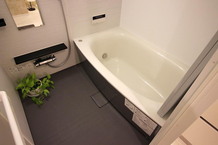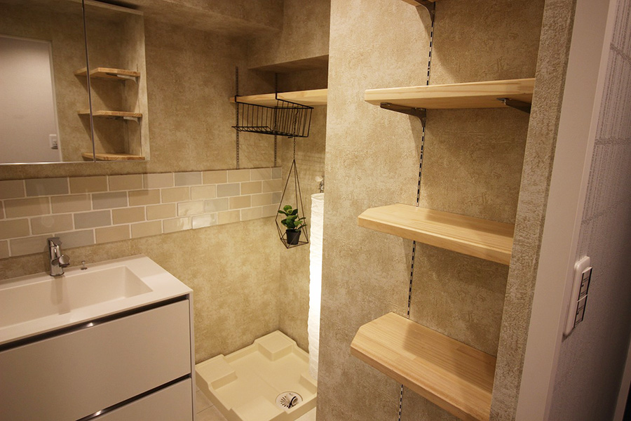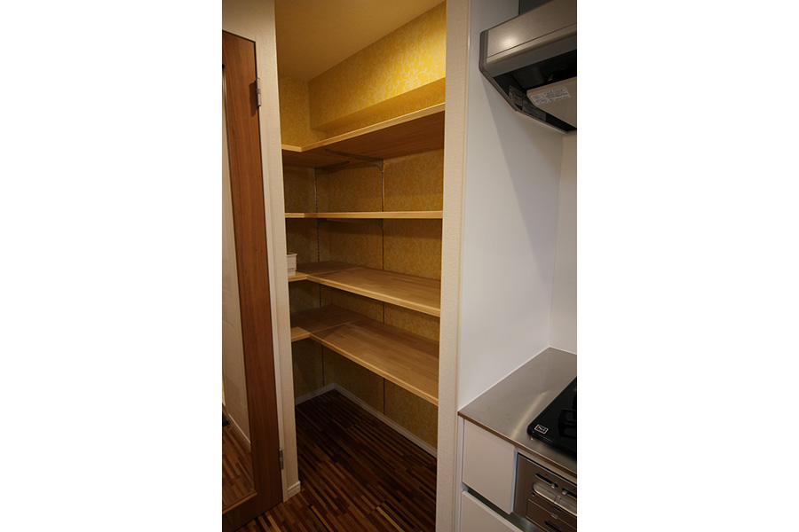 男性のお客さまには小さく感じられるお風呂を1416にサイズアップし、キッチン対面にはIKEA製品をベースにした造り付けの収納兼カウンターテーブルや本棚を造作しました。また、寝室には壁面を利用した大容量のクローゼットを新設しています。