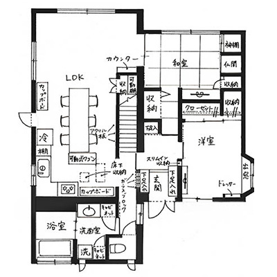 週末になると10人もの家族が集うお宅でしたが、ダイニングキッチンとリビング兼用の和室がセパレートされていたため、なかなか一堂に会することが難しいレイアウトでした。昭和の時代には当たり前だった「和室中心」のレイアウトですが、現在ではリビングが子どもたちの勉強の場になっていることもあり、各人が自由に過ごせる広々とした空間が求められています。