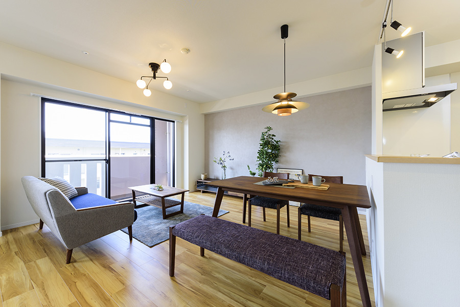 また、リビングと洋室との間には3枚引き戸を設置し、子どもの成長に合わせて間仕切れる(部屋数を調整できる)ようにしています。今回は総額650万円で水回りの設備交換だけでなく、建具や床も新たにし、間取りも更新しています。コストを意識しながらも、ご夫婦の夢が叶った現場となりました。
