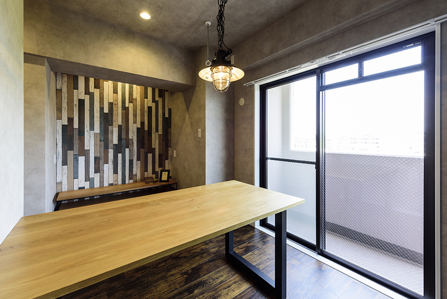 公園に隣接した日当たりの良いマンションの角部屋を、ご夫婦それぞれの好みに応じたお部屋へとリノベーションさせて頂きました。ご主人が好まれる「マテリアルな質感」を玄関ホールや寝室で表現する一方、リビングや洗面では奥さまのご要望に合わせて明るい雰囲気とさせて頂きました。
