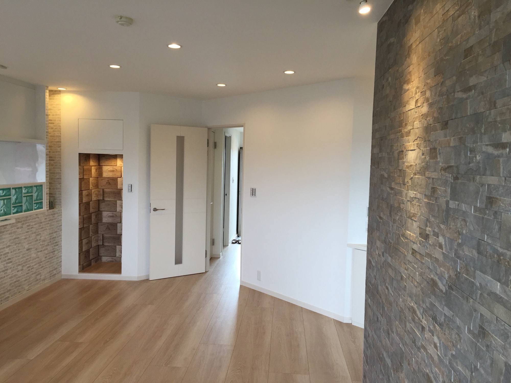 城南区片江にあるマンションの最上階を、ご夫婦お二人がとっても気持ちよく暮らせる「余裕ある空間」に改装させて頂きました。天然石を壁面に配し、昼と夜で雰囲気の異なる時間を楽しめるお宅となっています。