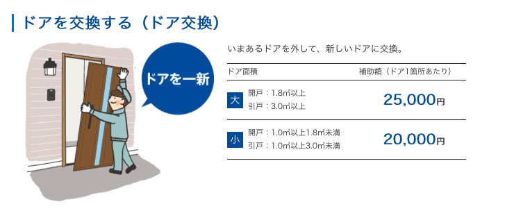 上記のうち1〜2種類を設置する方は、下記のような「開口部(ドアや窓)の断熱改修」または「外壁、屋根・天井または床の断熱改修」と併せて行うことで、補助金を獲得できるんです。