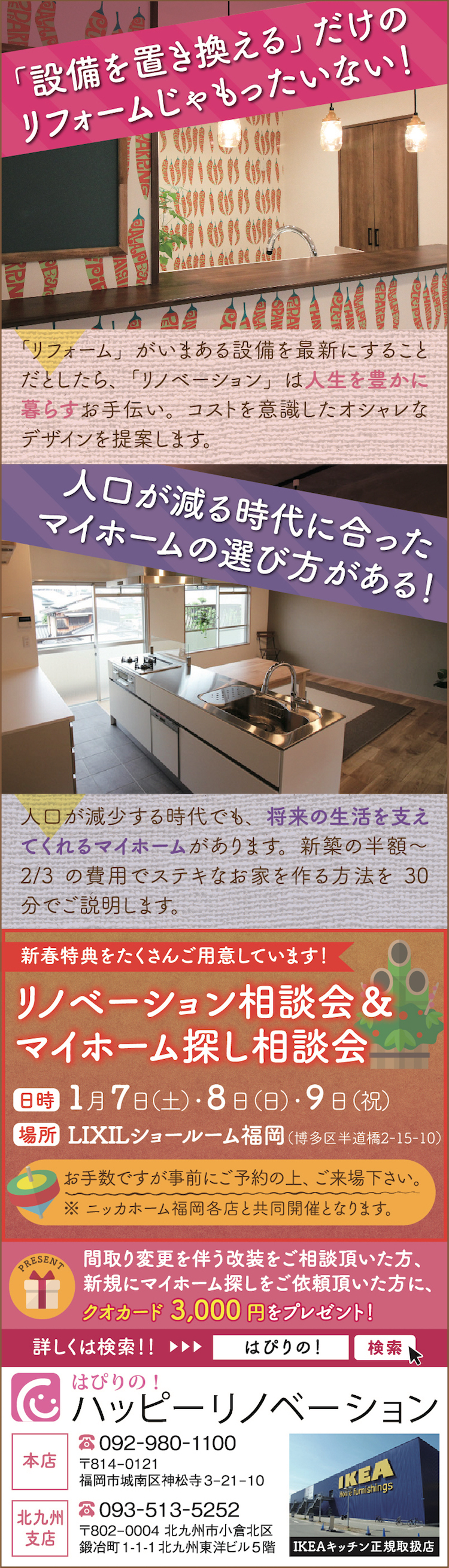 ハッピーリノベーション ▶︎ (電話) 092-980-1100