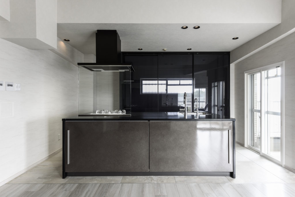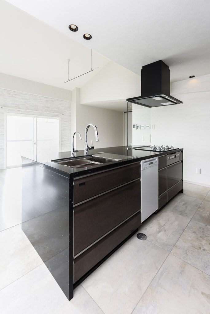 オトナかっこいい雰囲気のお宅にも、大容量のミーレの食洗機を設置させて頂いております。導入理由の一つは「ワイングラスの洗浄に向いているから」とのこと。