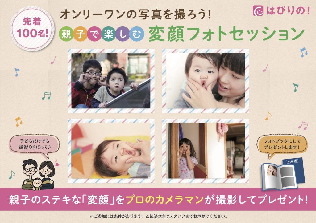 そして、私たちはぴりの!もこちらのイベントを盛り上げるために、とっても独創的な企画をご用意させて頂きました。その名も「親子で楽しむ変顔フォトセッション」です!