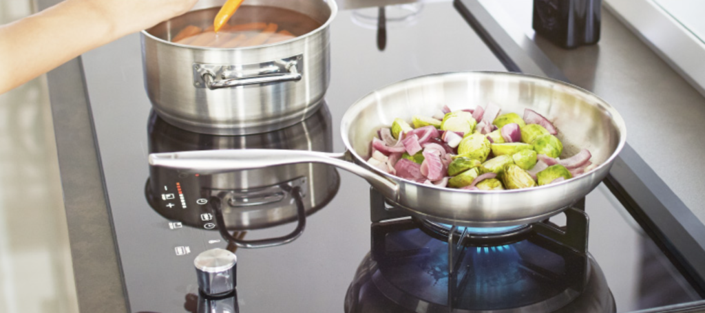 ハリー:こちらのセントロで、特にお客さまがビックリされるのが「ハイブリッドコンロ」です。こちらのコンロはIHとガスを同時に使えるという、とっても珍しい機種なんですよ。