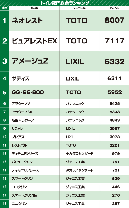 ※ 総合1位を受賞したネオレスト(TOTO)