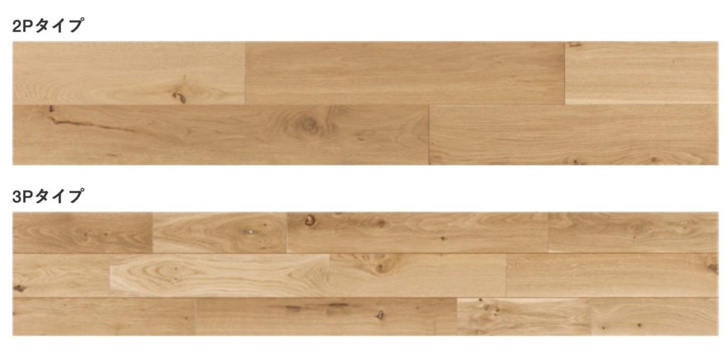ハリー:よく気づきましたね。合板フローリングの多くはおよそ30cmの幅なんですが、その1枚ずつが複数枚に見えるように溝が作られているんです。この溝を30cmの間に1本入れると「2P」、2本入れると「3P」と呼ぶようになっています。