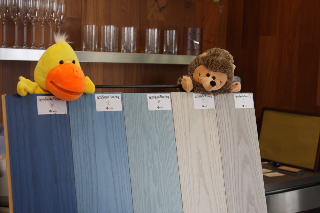 ハリー:続いては、イクタらならではの美しいフローリングをご紹介します。まずは、こちらの「グラディエンテ フローリング」です。このシリーズは「色で遊ぶ、色を楽しむ」をコンセプトに、イタリア・タブ(tabu)社と提携して誕生した染色フローリングです。現在、インテリアの可能性を広げる新しいアイテムとして大変注目されているんですよ。