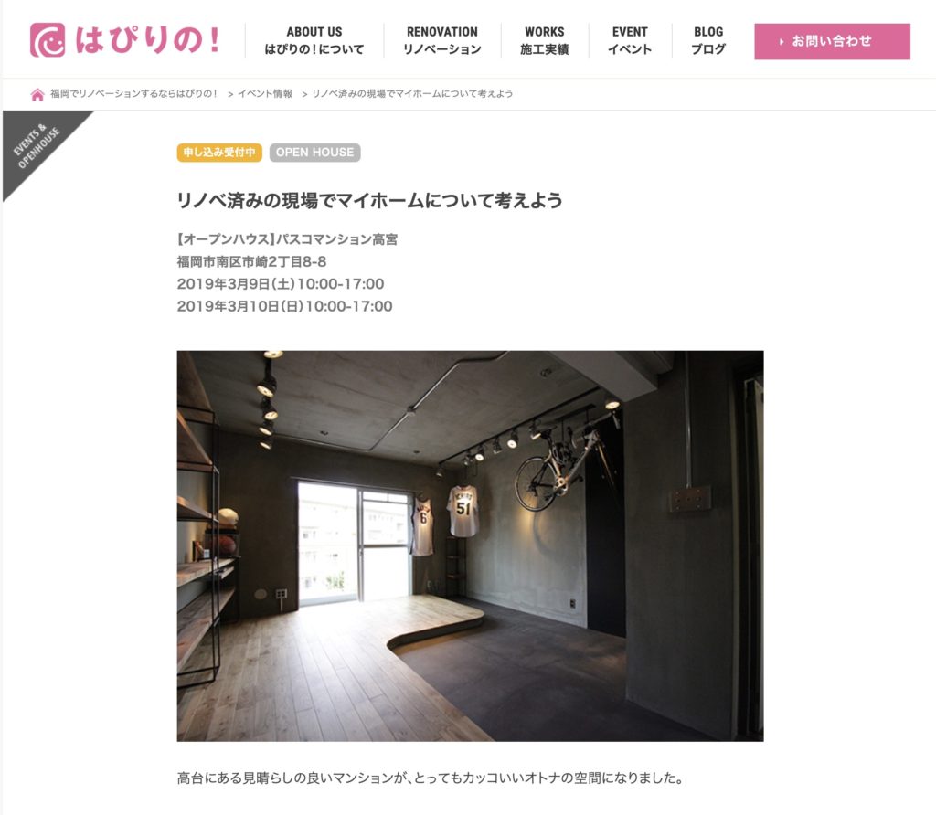 ※ 会場見学だけでしたら事前予約は不要ですが、リフォームやリノベーションのご相談、マイホーム探しのご相談がある方は必ず事前にご予約ください。下記のWEB、またはお電話(092-980-1100)でご連絡ください。