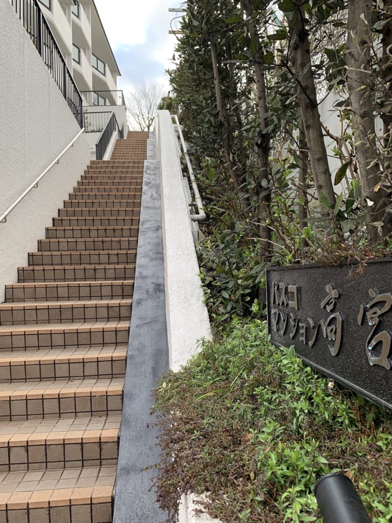 今回リノベーションさせて頂いたのは、人気の西高宮小学校から徒歩圏内の山手にあるヴィンテージマンションです。ステキな雰囲気を持つマンションとは言うものの、立地は山手。さらに現場はそこから階段を100段ほど登っていく必要があります。