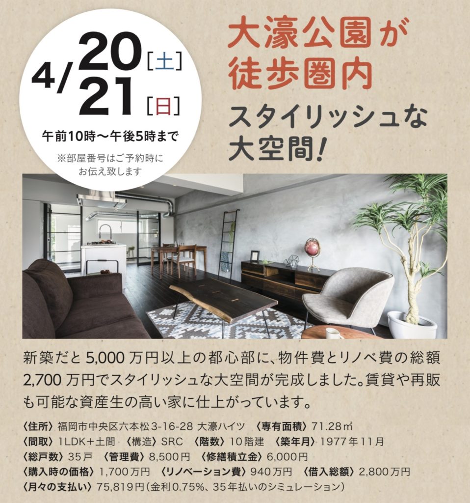 どうしても狭い物件の方が平米単価は上がってしまいがちですが、それでも物件費や諸経費と合わせておよそ2,000万円で、福岡を代表する都心部に「オンリーワンのマイホーム」が手に入るのは「中古物件+リノベーション」ならではのメリットです。