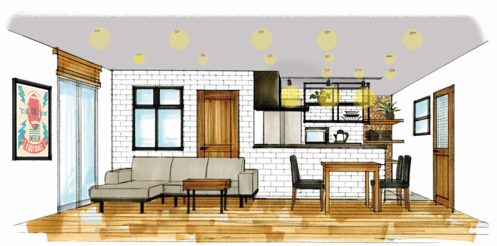 リビングから気持ちの良い川面が見える立地を活かし、開放的なリビングダイニングを実現しました。また、ペット飼育も可能な物件だったため、玄関にはお散歩後のワンちゃんの足を拭いてあげられる土間スペースも確保。素敵なカフェのような空間に仕上がりました。