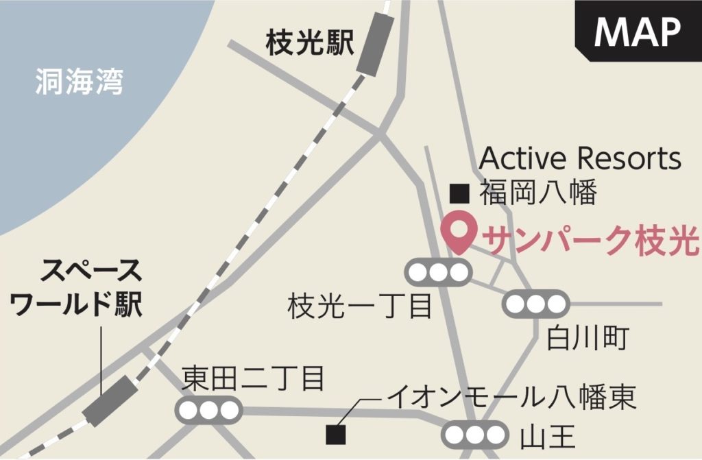 場所 サンパーク枝光(八幡東区枝光本町8-10)※ 部屋番号は予約時にご案内