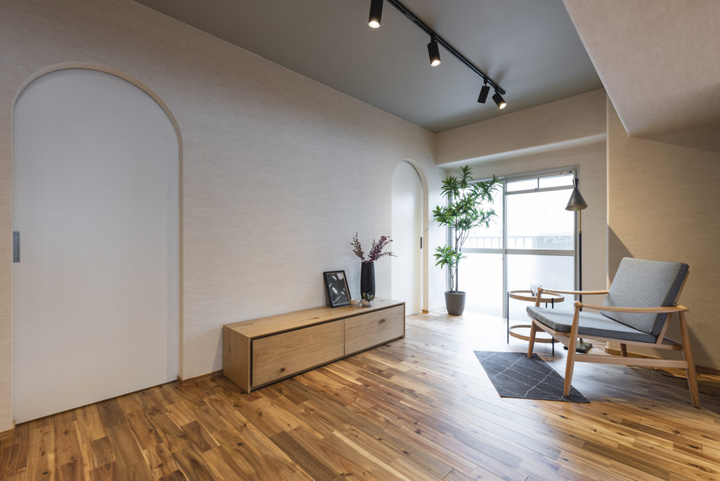 無垢材の床、アーチ型のくぐり戸、オーダーメイドのキッチンカウンター、ブルーグレーやライムグリーンの美しい壁紙。新築ではなかなか実現できない優しい雰囲気を持つモデルルームで、新年にふさわしい特典満載のオープンハウスを開催させて頂きます。