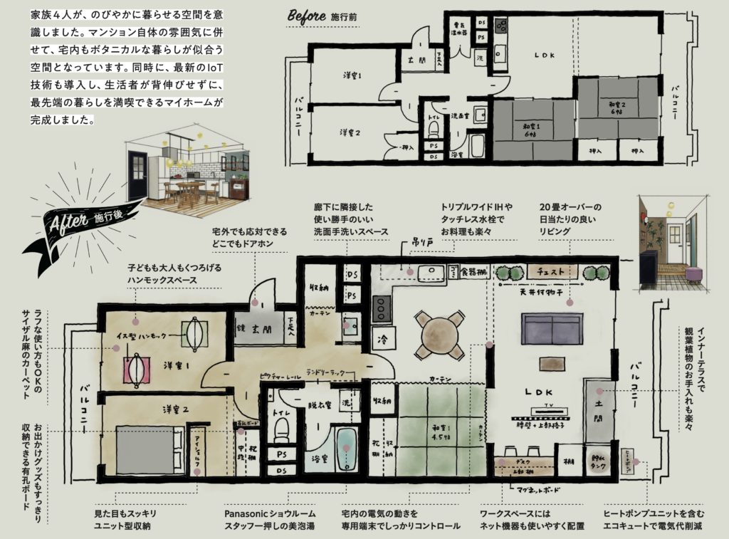 その実現に向けてスケルトンベースで間取りを見直し、アフターコロナの家族の暮らし方を想像し、将来を見据えた最先端のIoT活用方法を検討しました。