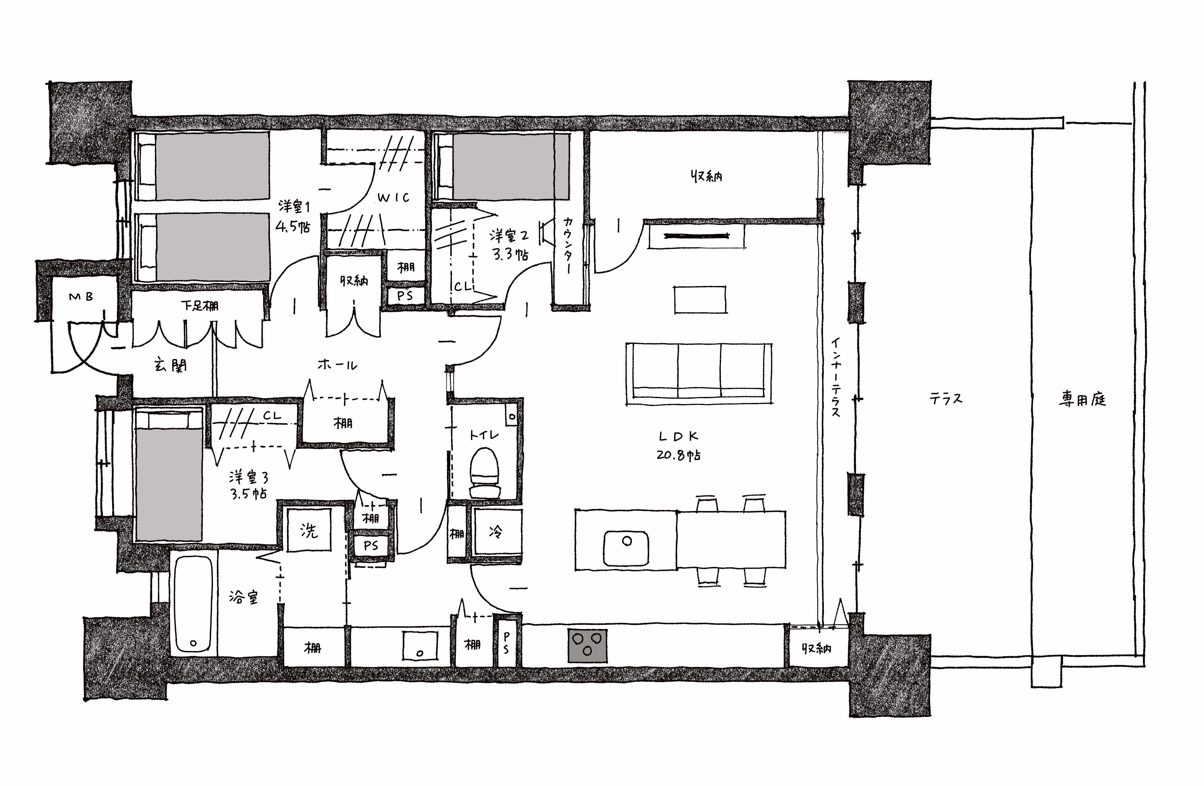 アフターコロナを意識した「Enjoy at Home」プロジェクトの第2段となる今回のモデルルームでは、子育て後の夫婦を中心に見据えてデザインと設備選定を行いました。