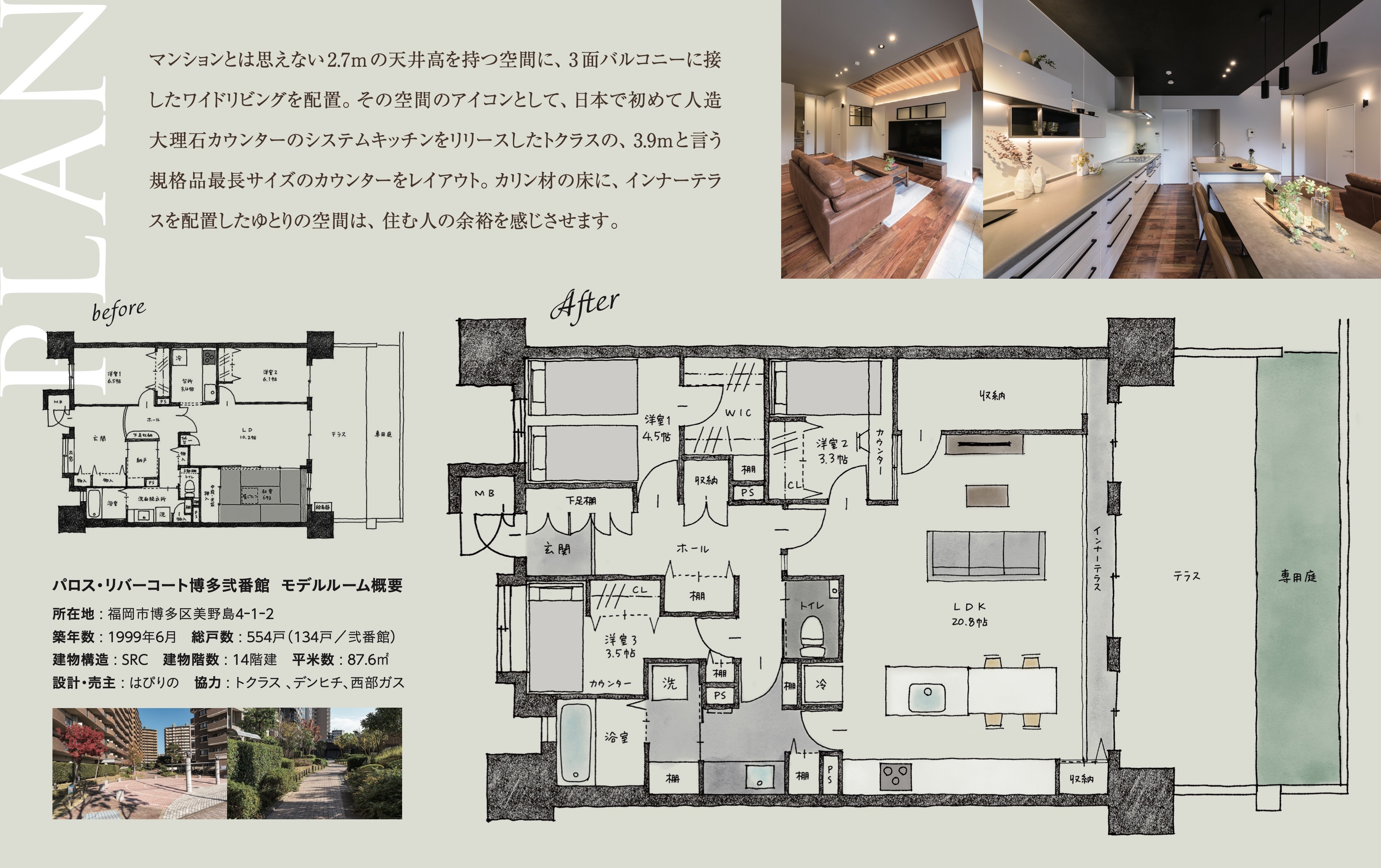 今回のブロジェクトではトクラスだけでなく、デンヒチ、西部ガス、朝日ウッドテック、大光電機など様々な企業にも協力を頂き、空間がより魅力的に、毎日の暮らしが快適になる最新設備を導入しています。