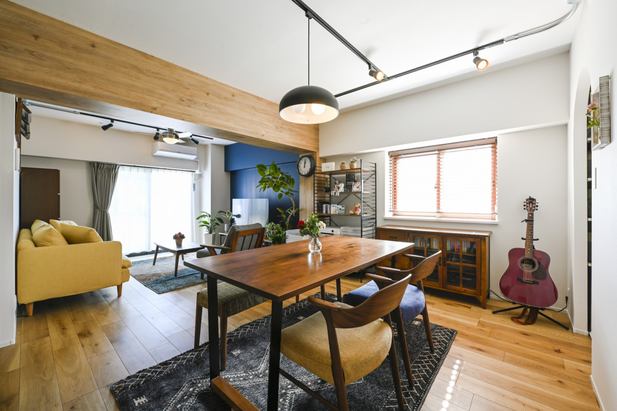 色と素材を楽しむリビングダイニング