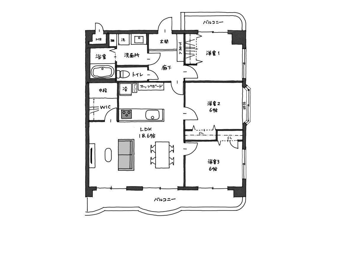 今回のモデルルームは82.81㎡という広さを持つ4LDKを、3LDK+Sへと改装し、キッチンやお風呂の水回り設備だけでなく、床や室内建具などもすべて交換しています。
